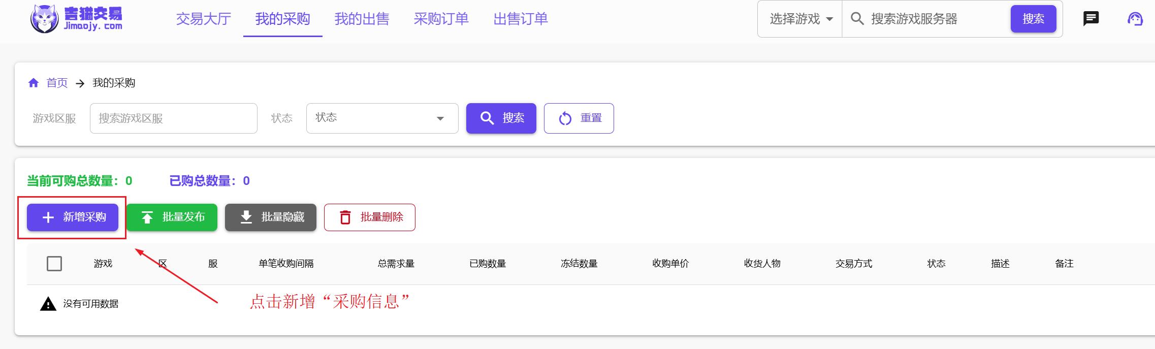 1、点击网站导航“交易大厅”,再点击“发布采购”,即可进入采购信息添加页面
